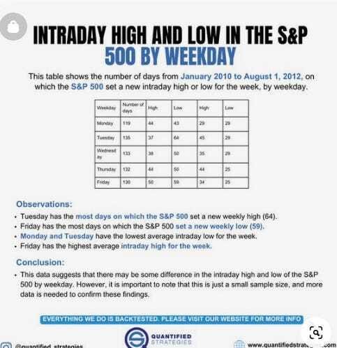 [instagram] Intraday High And Low For S&P By Weekdays