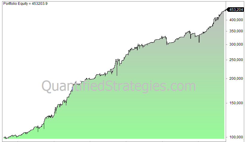 This is the equity curve for the 3 days down overnight trading strategy: