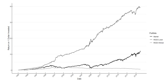 A strategy that buys last month’s winners and shorts its losers within this high-turnover group generates a positive and significant average return of 16.4% per annum! This is the essence of short-term momentum.